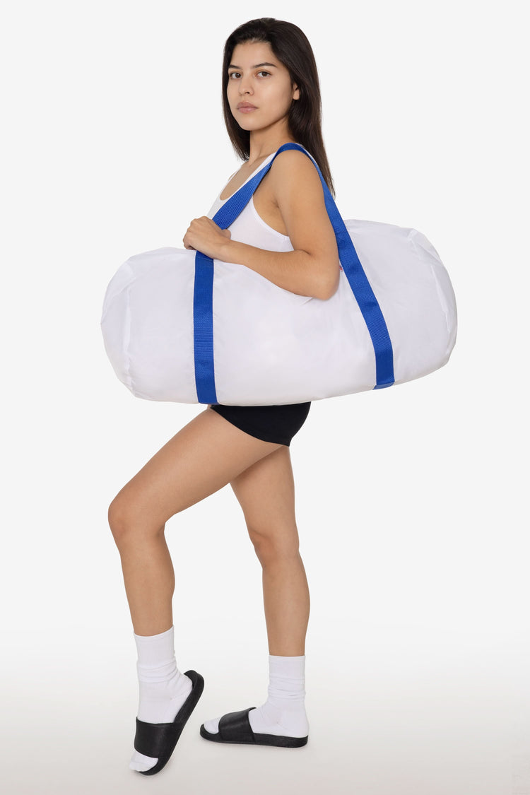 A traditional sporty feel for the gym, traveling, or anywhere you need with durability that lasts. This bag has a height of 13.5" and bottom width of 40" with versatile nylon webbing straps that fit comfortable in your hand or over your shoulder.