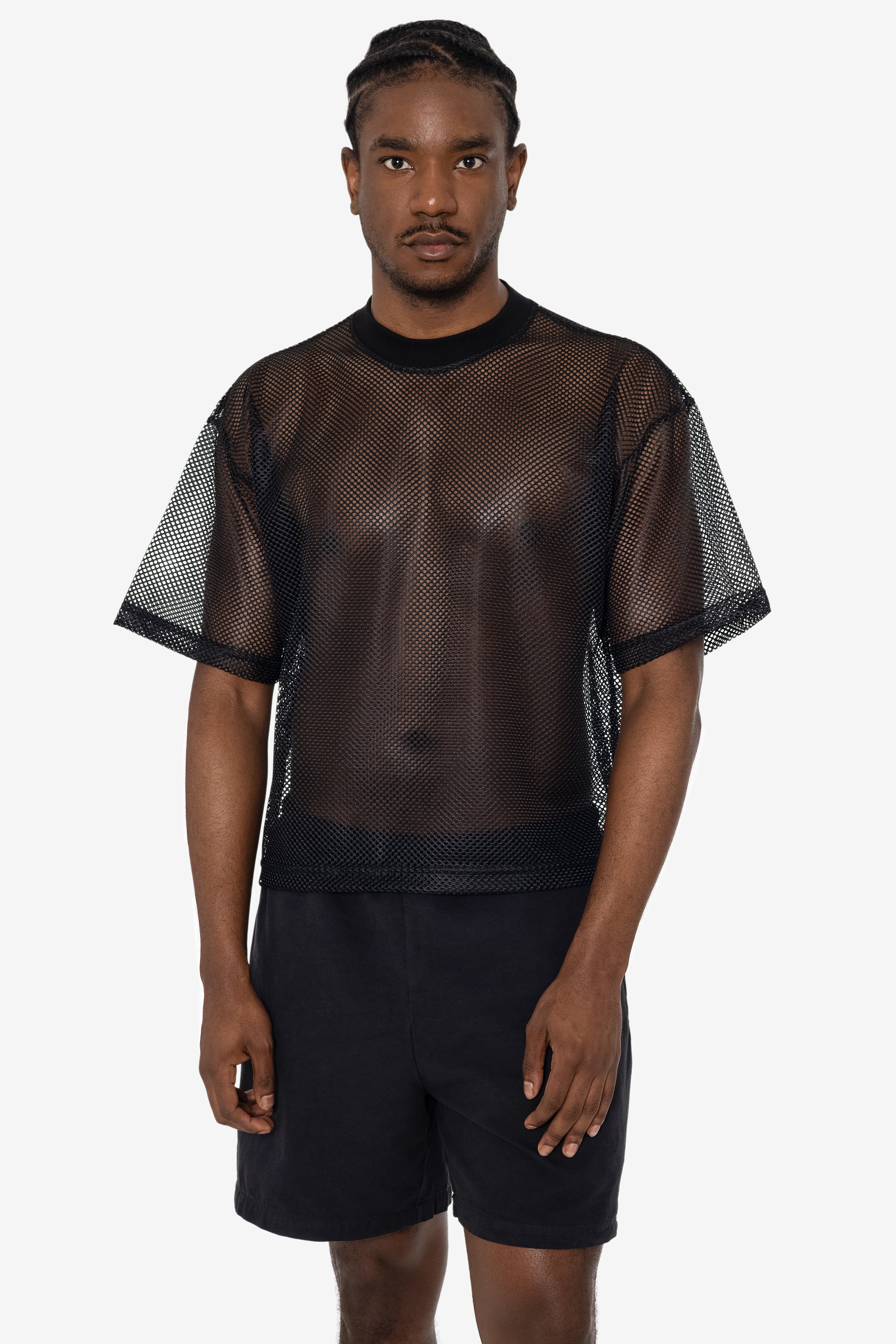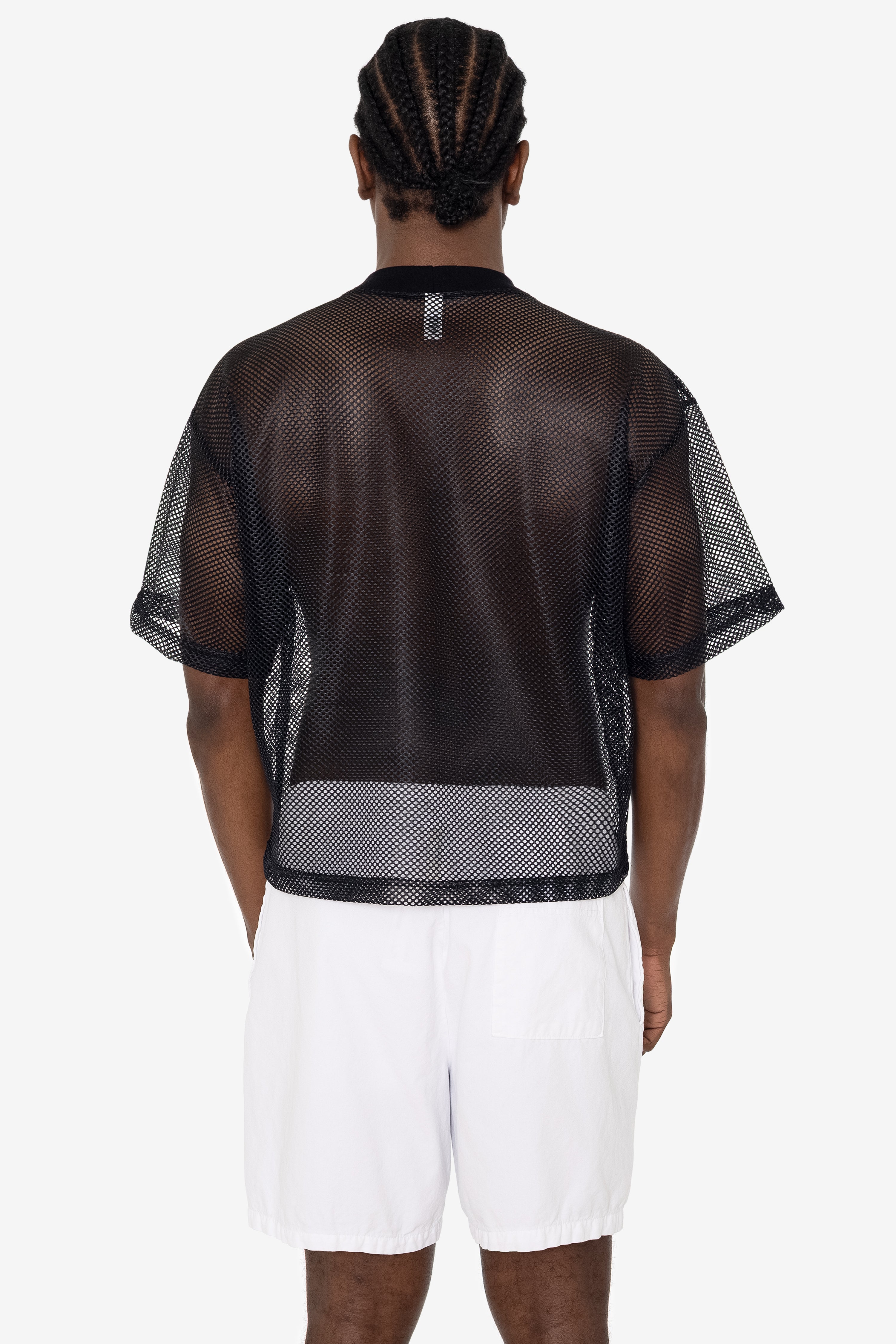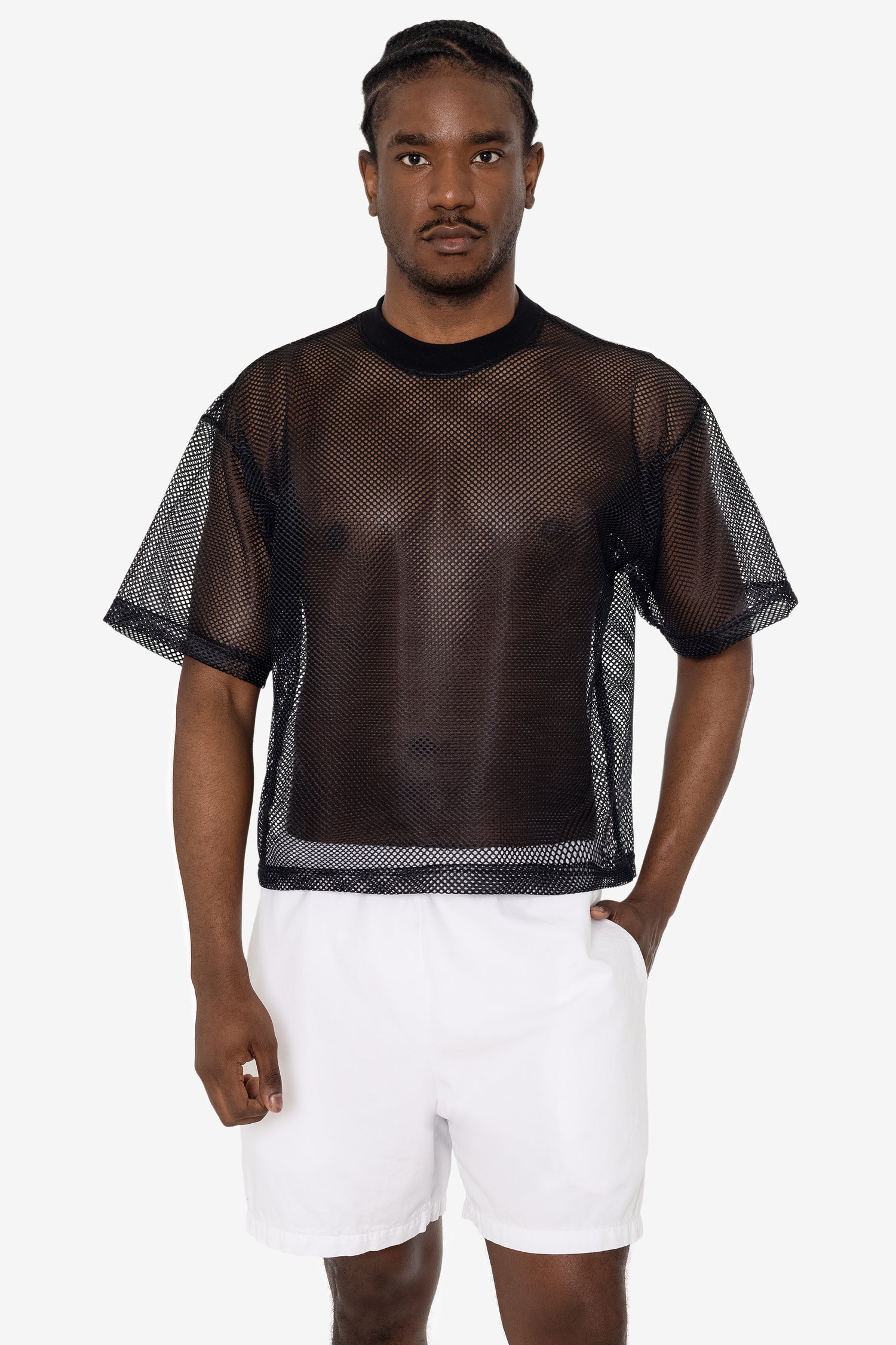 The King Mesh T-Shirt is designed with a relaxed silhouette offering a touch of athletic style. Ideal for hot days, this unisex tee features a wide, cropped fit for easy, breathable wear. Its lightweight fabric makes it a versatile addition to your wardrobe, whether worn alone or layered.