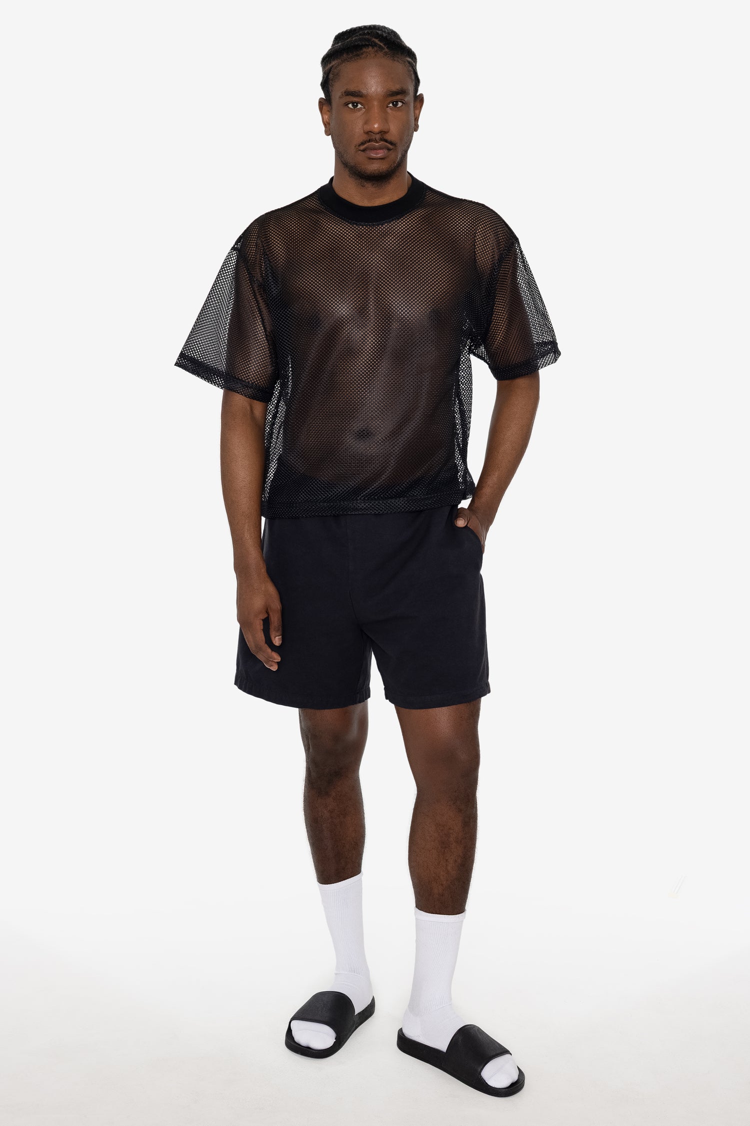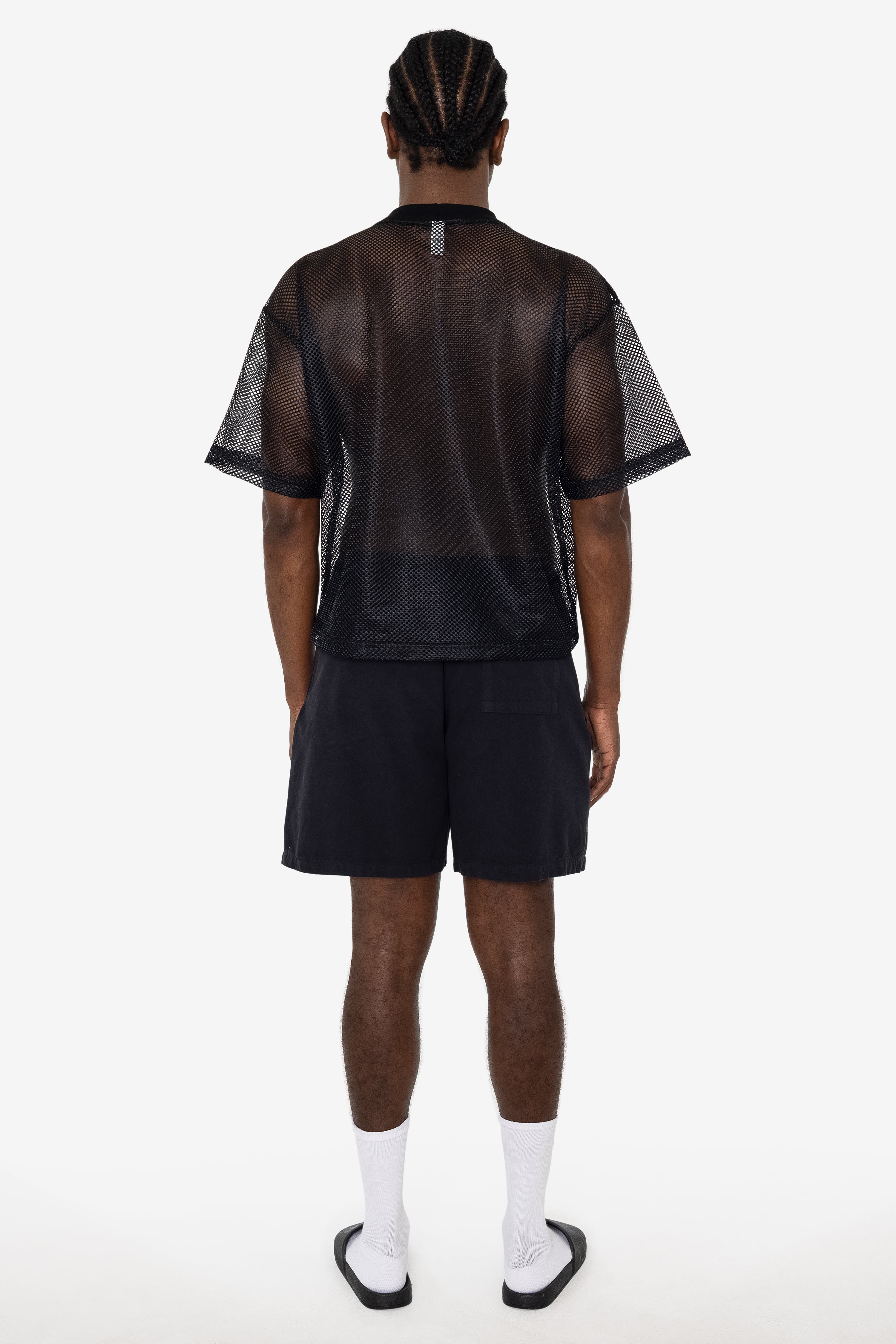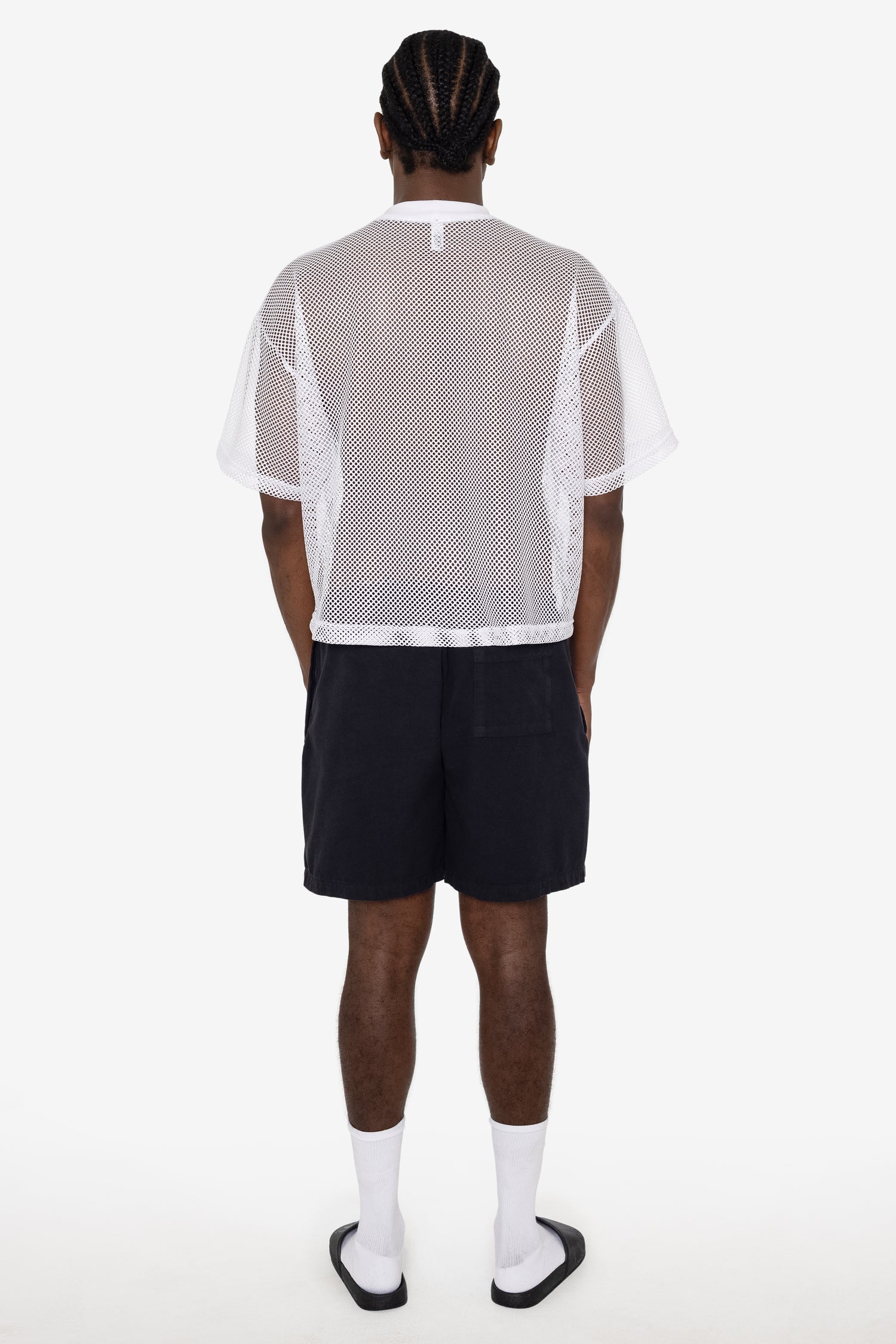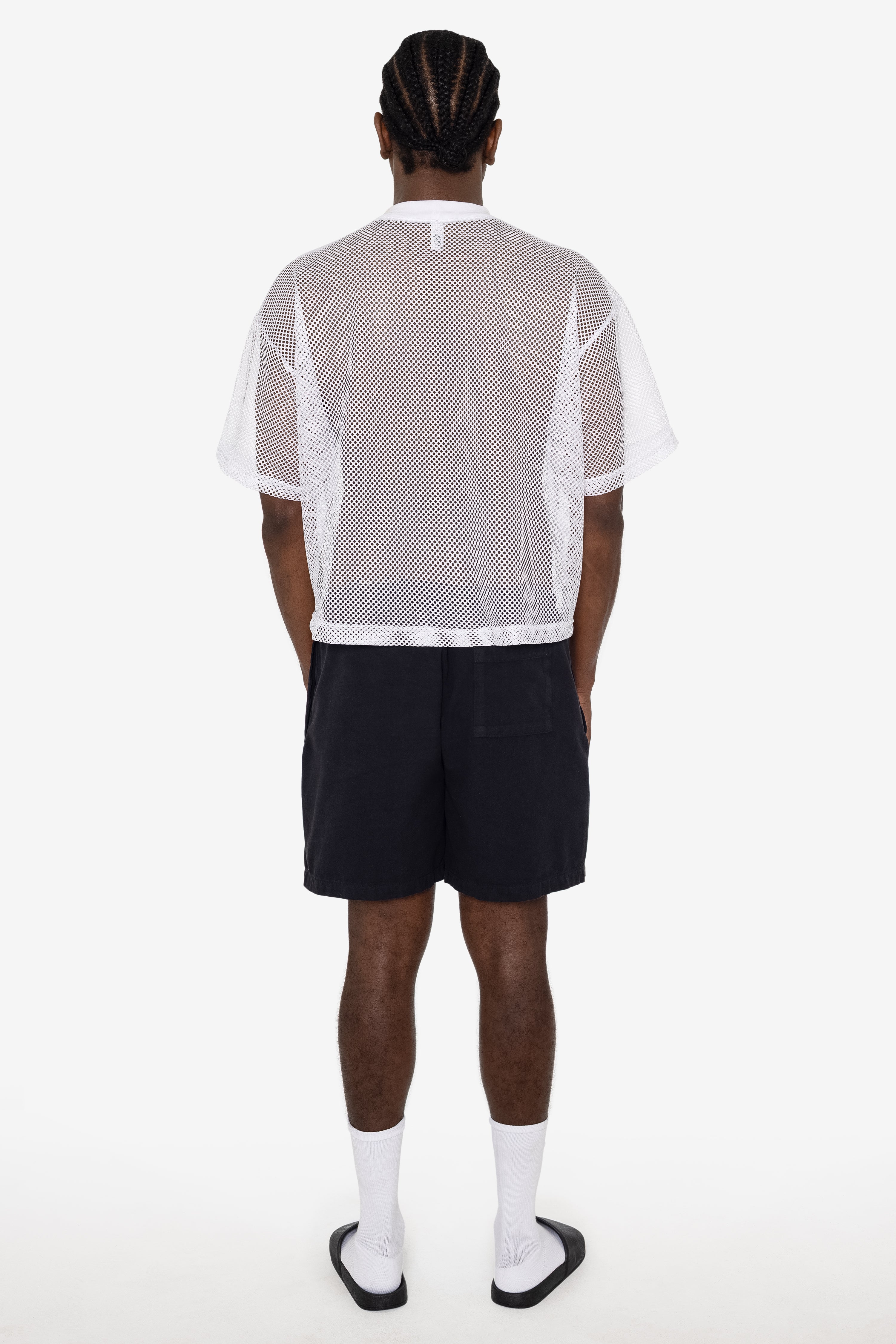 The King Mesh T-Shirt is designed with a relaxed silhouette offering a touch of athletic style. Ideal for hot days, this unisex tee features a wide, cropped fit for easy, breathable wear. Its lightweight fabric makes it a versatile addition to your wardrobe, whether worn alone or layered.