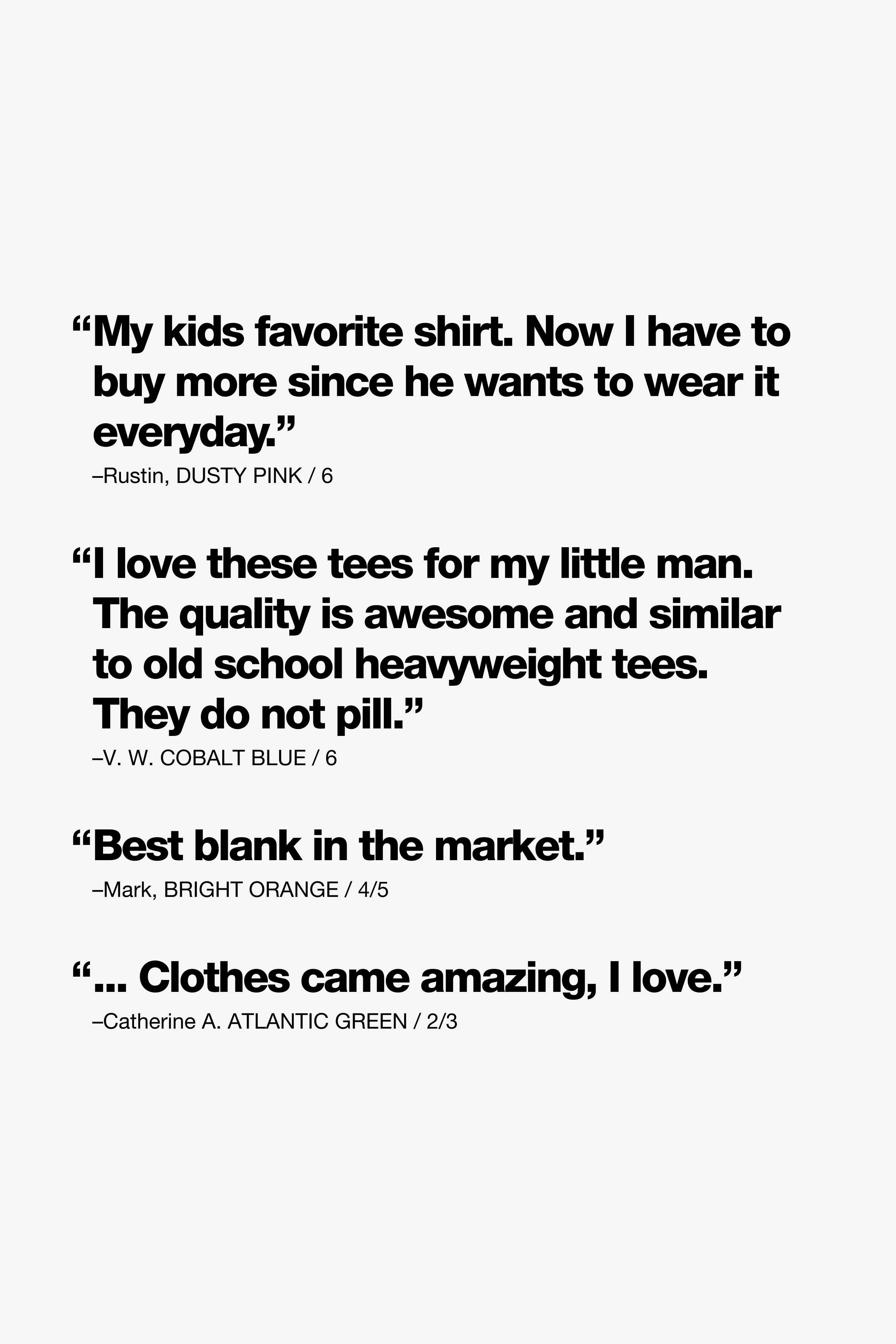 I love these tees for my little man. The quality is awesome and similar to old school heavyweight tees. They do not pill. I will keep buying these and avoid target/walmart shirts that pill immediately.