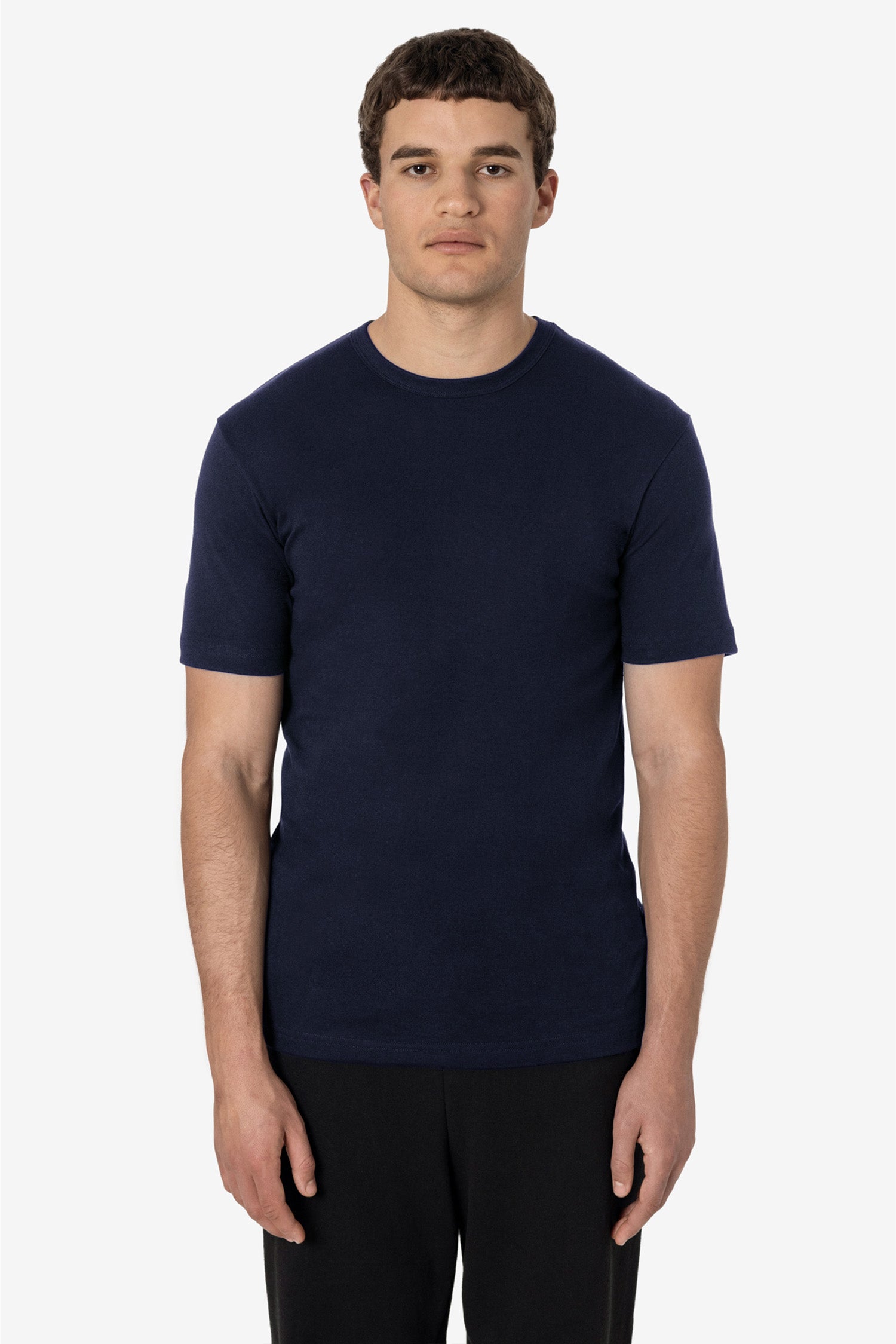 This original unisex baby rib fitted tee was designed by Dov Charney in the early 90s and remains an essential summer tee 30 years later. This top is made of our 100% cotton 1x1 baby rib and features a crew neckline and short sleeves with a binding finish and the perfect full-length fit that can be worn tucked or untucked and suits any occasion.