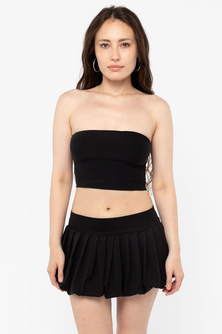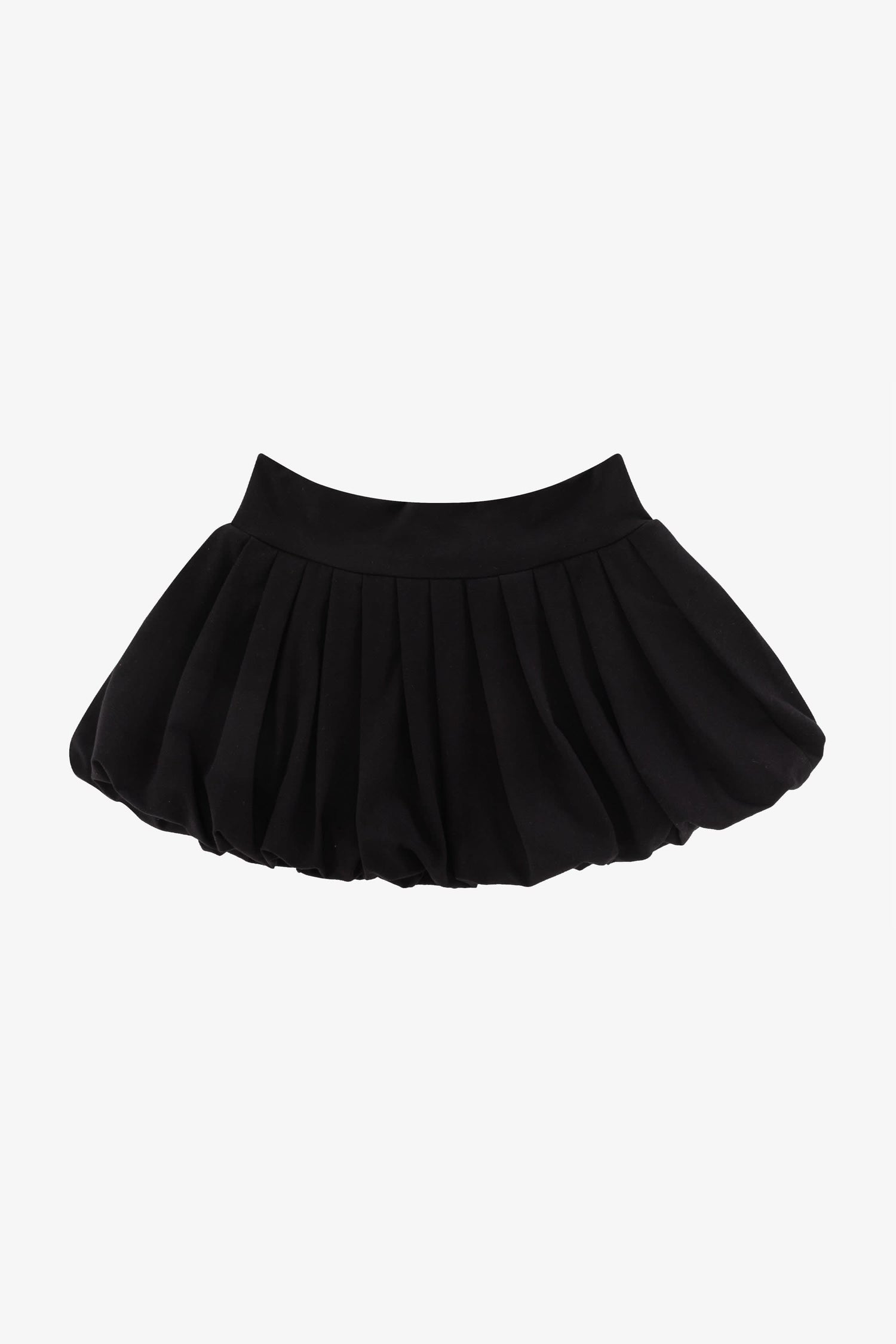 This pleated bubble skirt can be worn mid to low rise on the hips. The pleating provides just enough volume for flirty appeal.