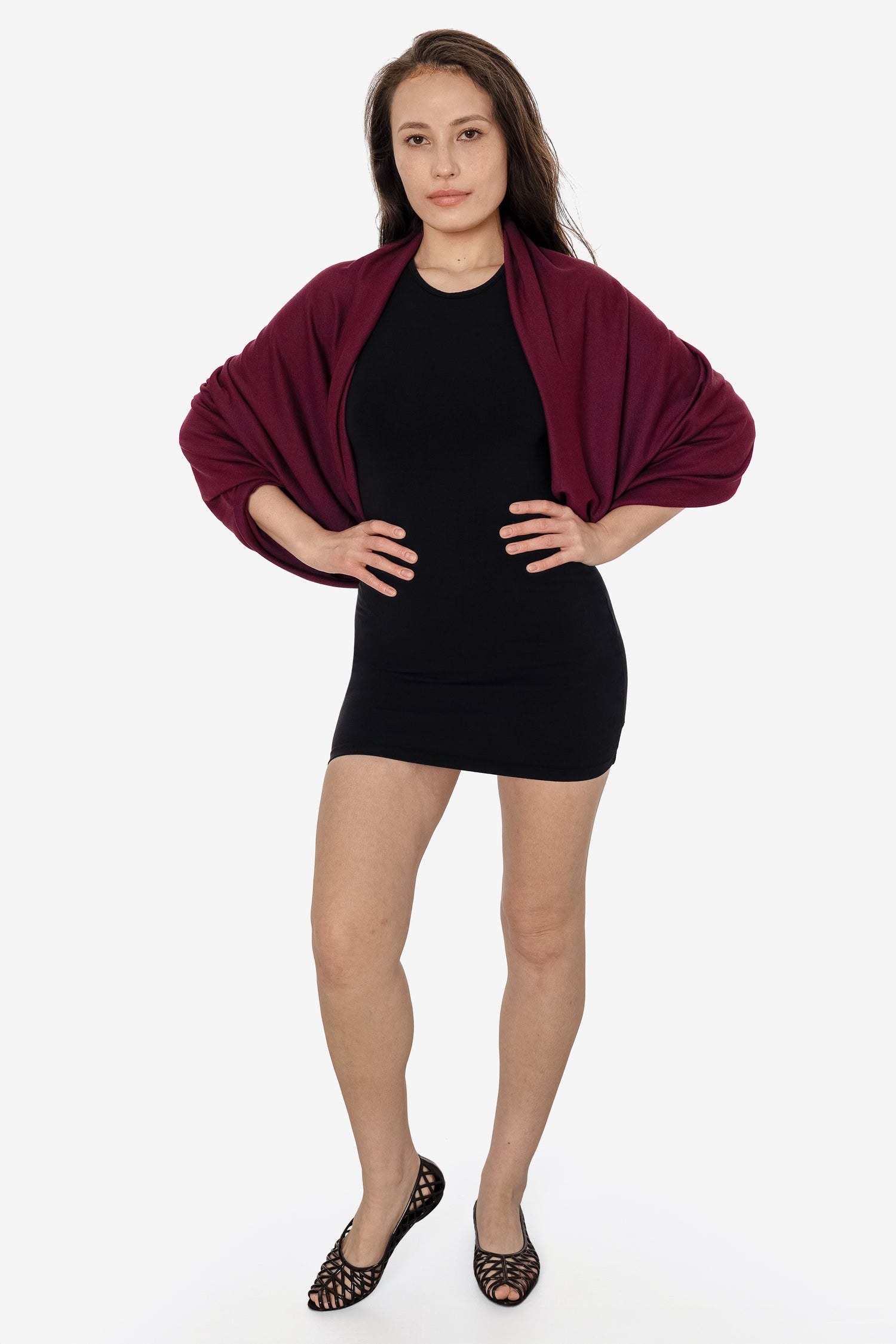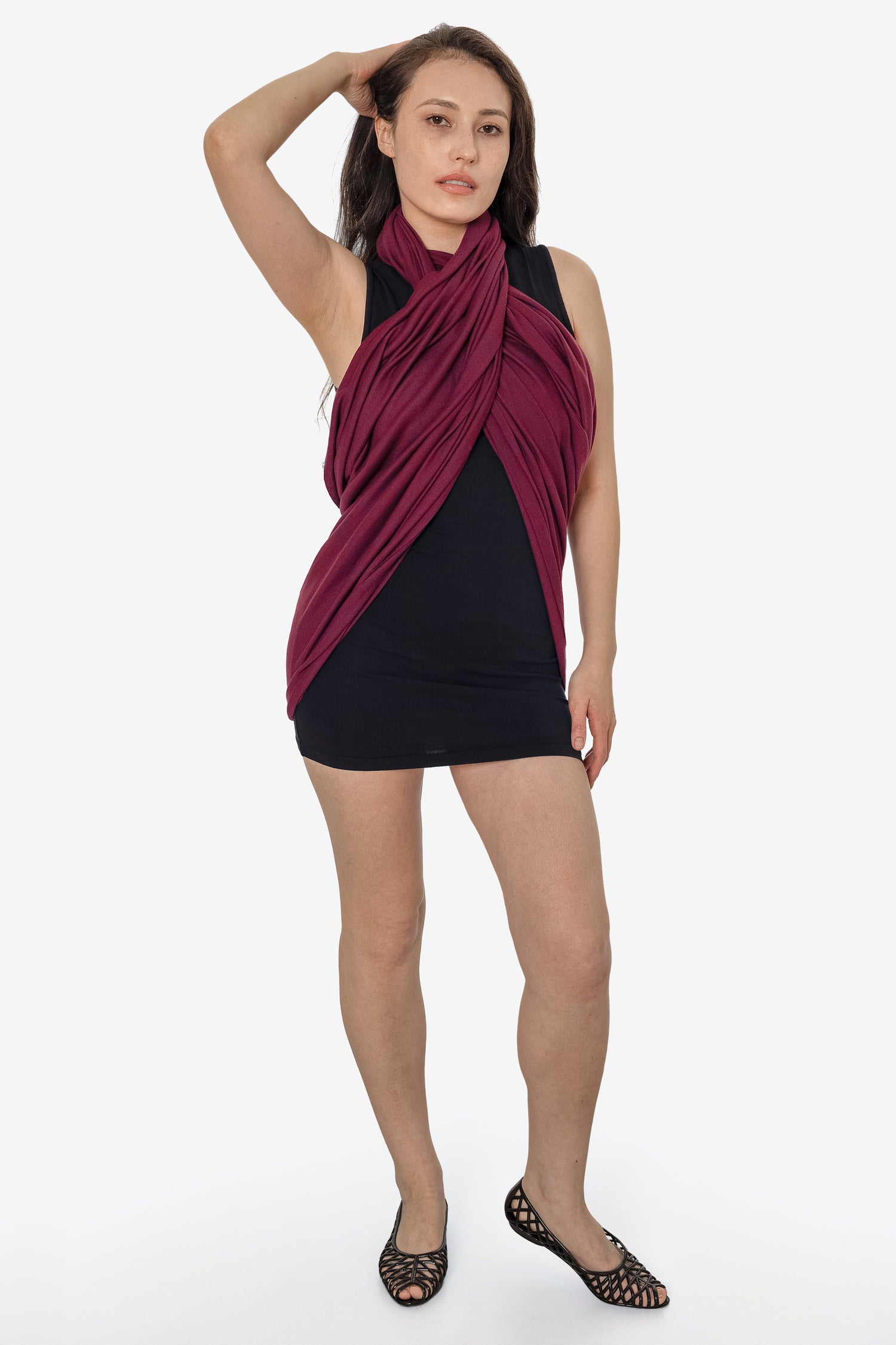 I received this item as a free gift from Los Angeles Apparel. When I opened the package, I saw a length of material with raw edges. Interestingly, it had no seams, but was all circular. The quality and color of the material are excellent, as always. However, there is nothing I can do with it, even trying the 8 suggestions. So, I will either use it as house shawl when all my other shawls are in the laundry, or sew something else out of it. This is not something that I would purchase, but thank you anyway.