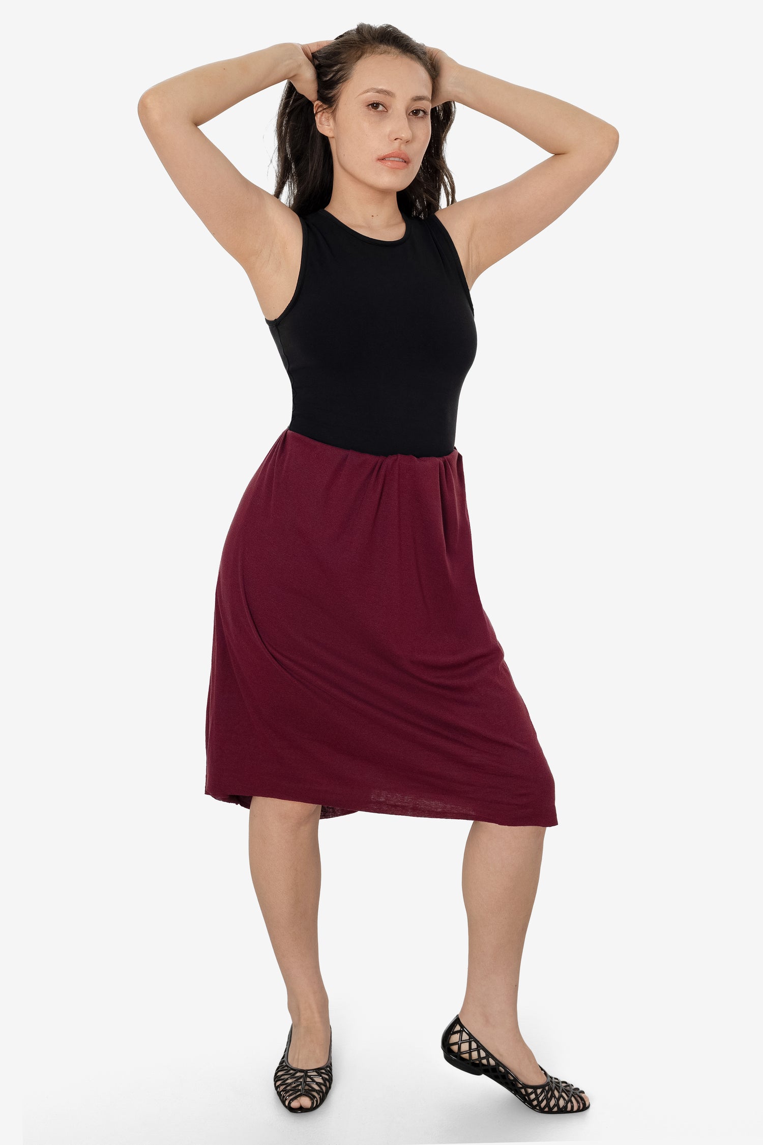 Layered Knee Length Skirt - Pull tube up around entire body and fasten a belt or string around waist. Let excess fabric hang over as a second layer of the skirt.