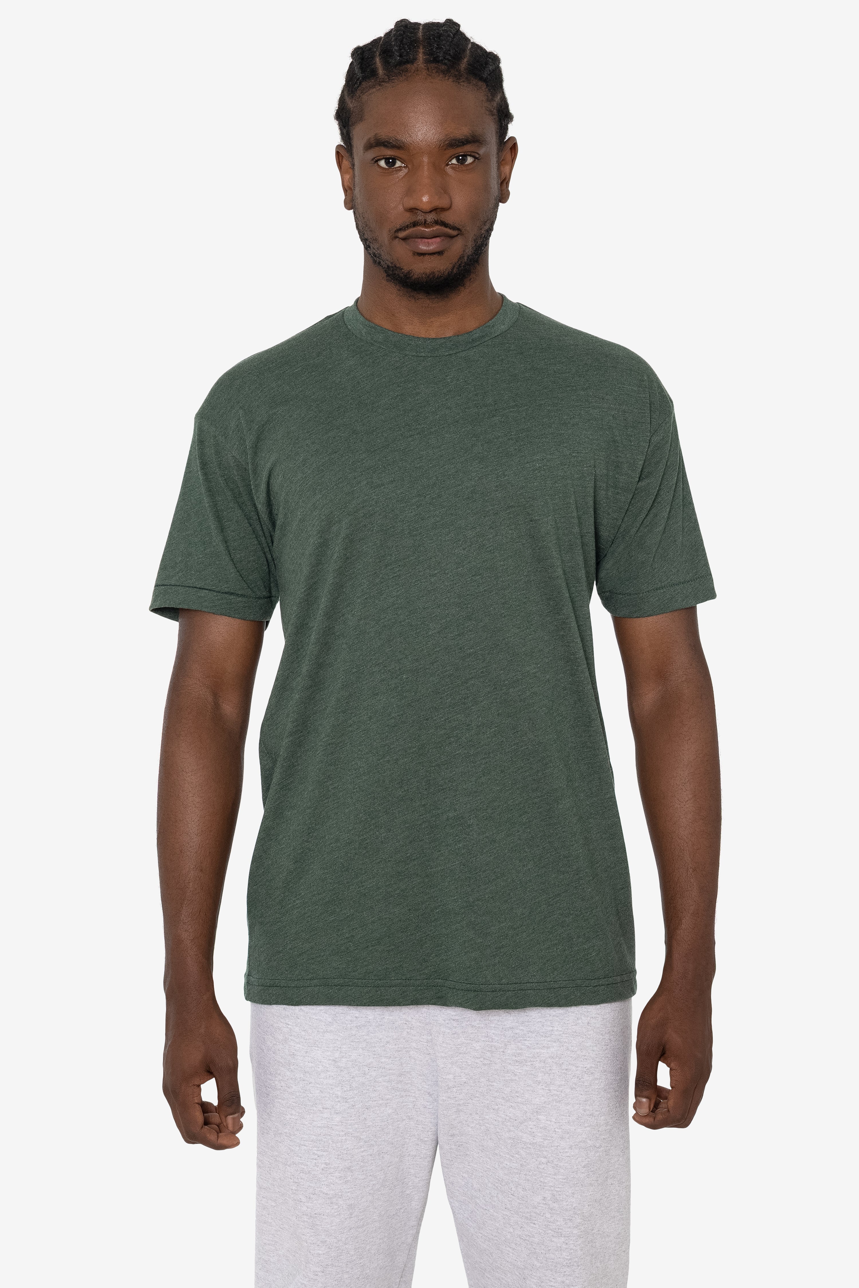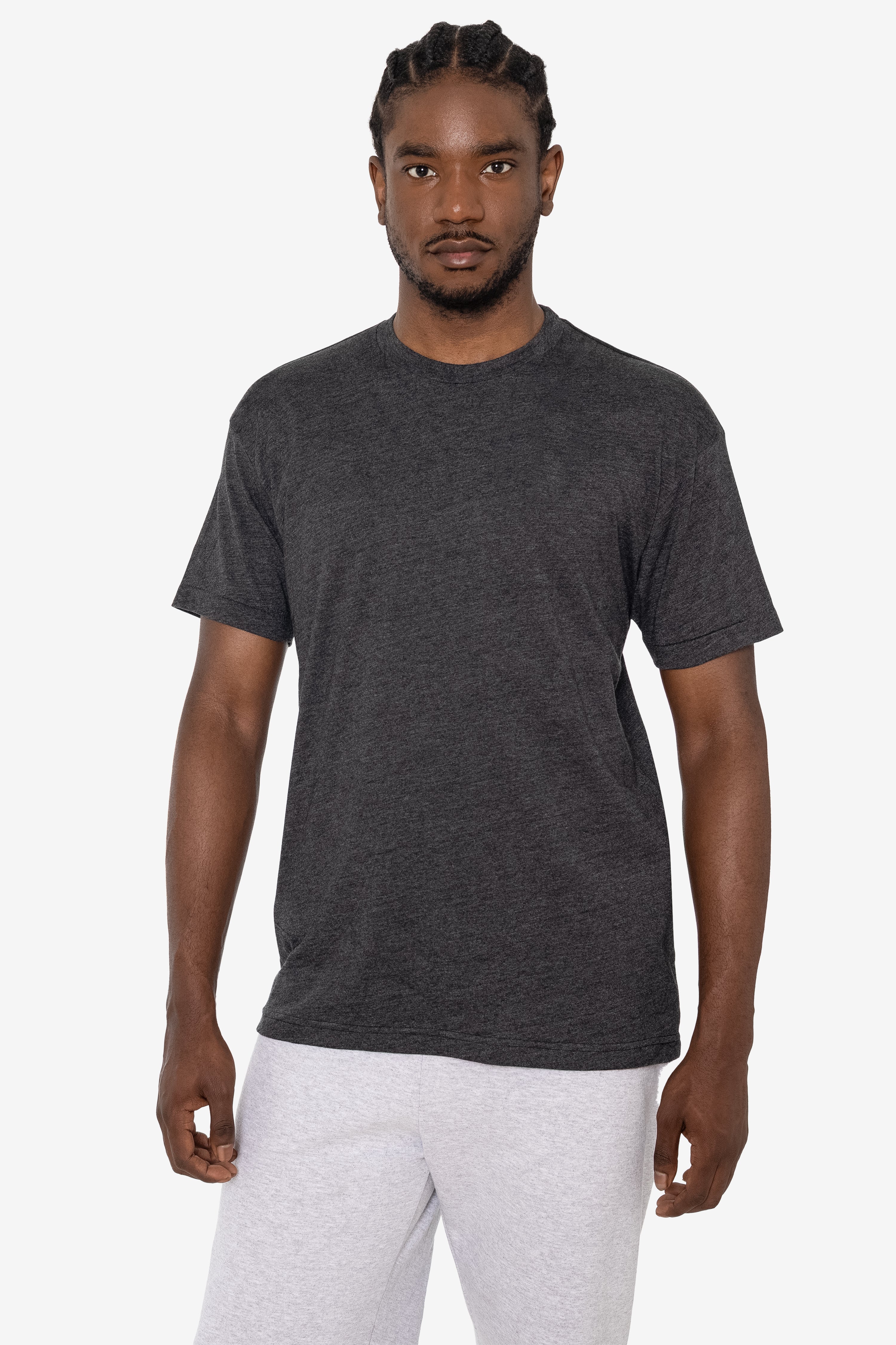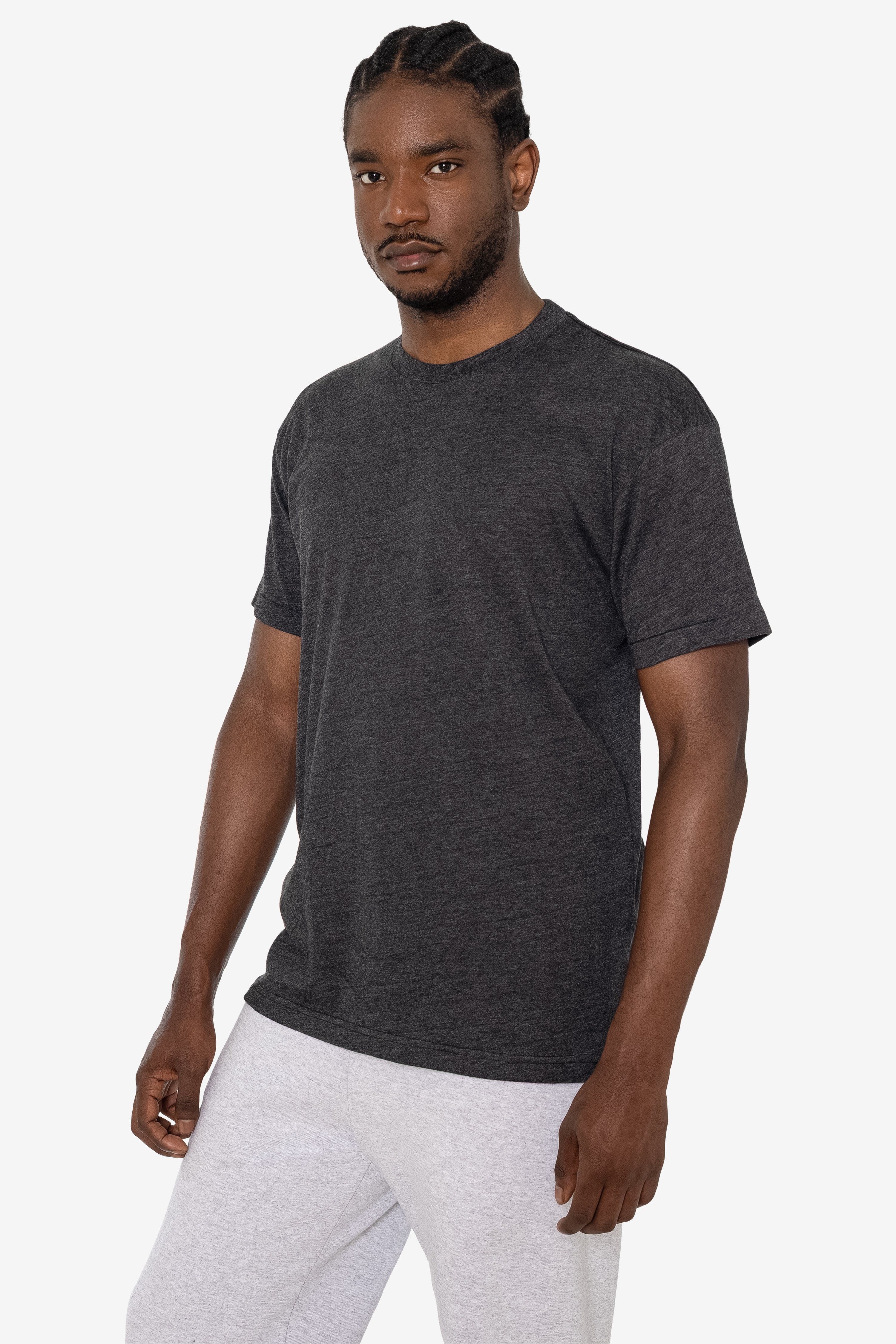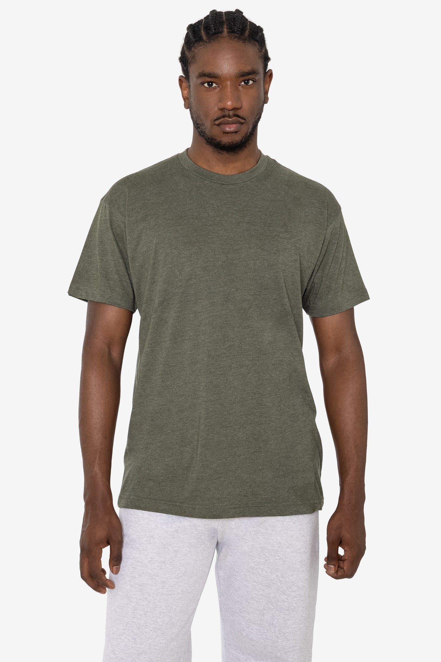 It was difficult to find a U.S. manufacturer that produced a t-shirt of blended fabric [cotton/polyester]. Currently, 100% cotton seems to be the overwhelming choice. These tee’s fit and feel great, look good, and are made well [although how long they’ll last is an open question at this point in time].
