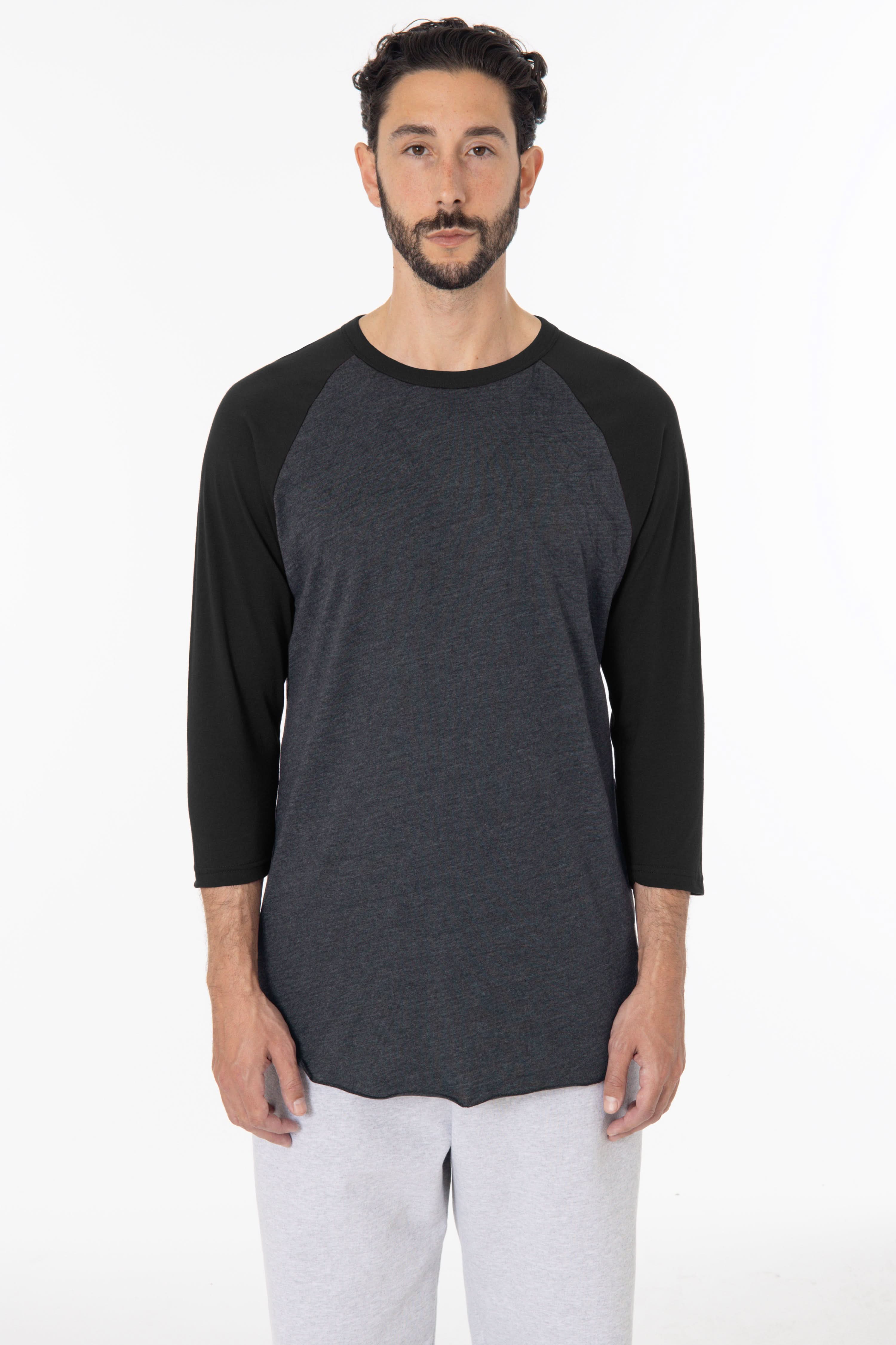 This classic unisex raglan is made from one of our bestselling, original textiles. Our 50/50 poly cotton is lightweight and versatile. This style features 3/4 length sleeves and a raw-finished hem.