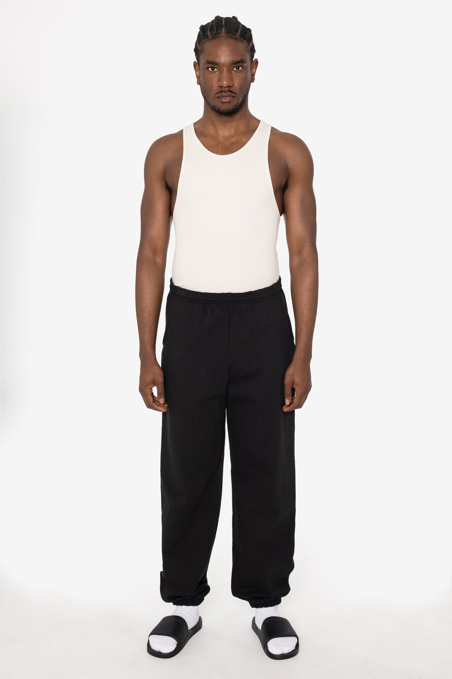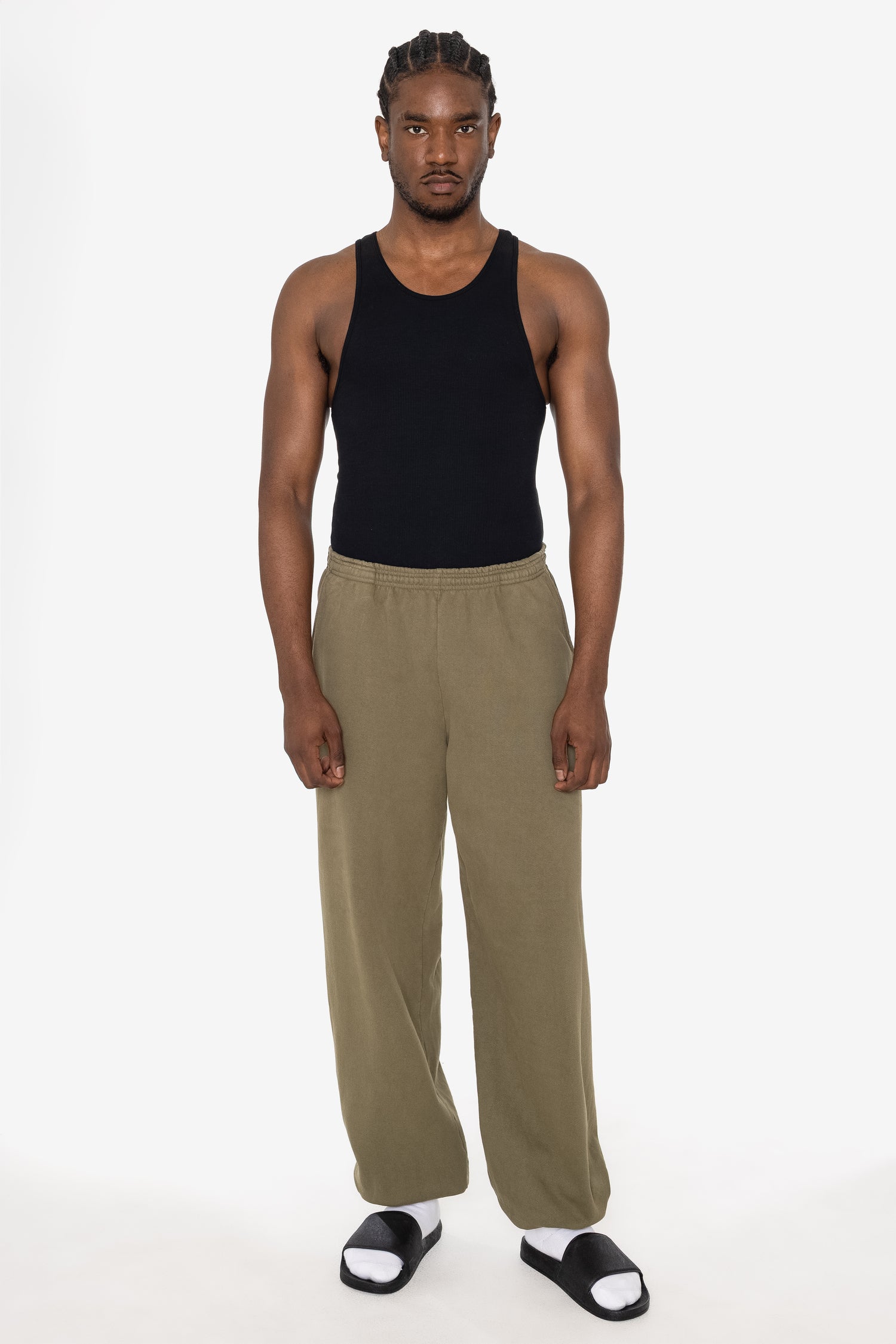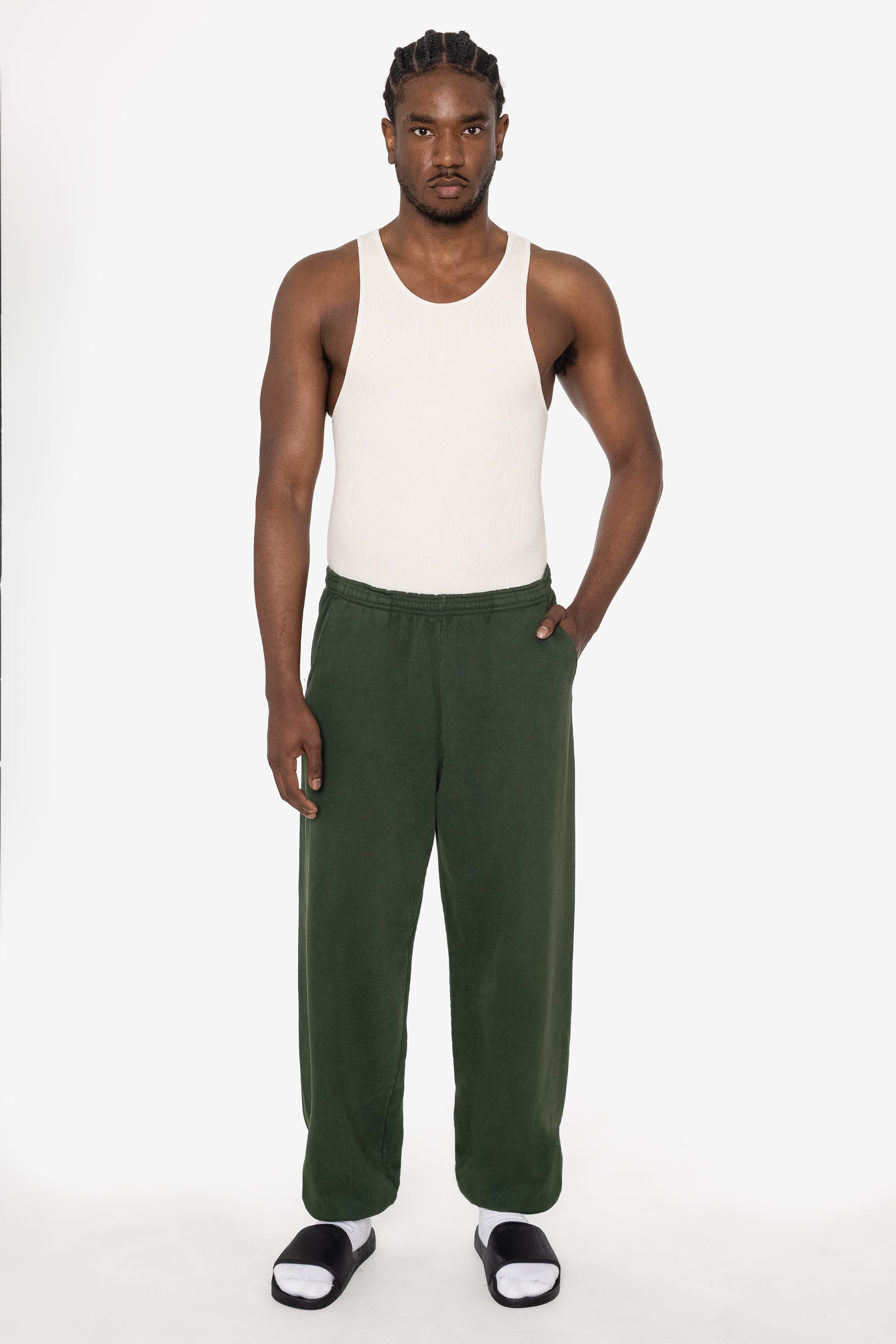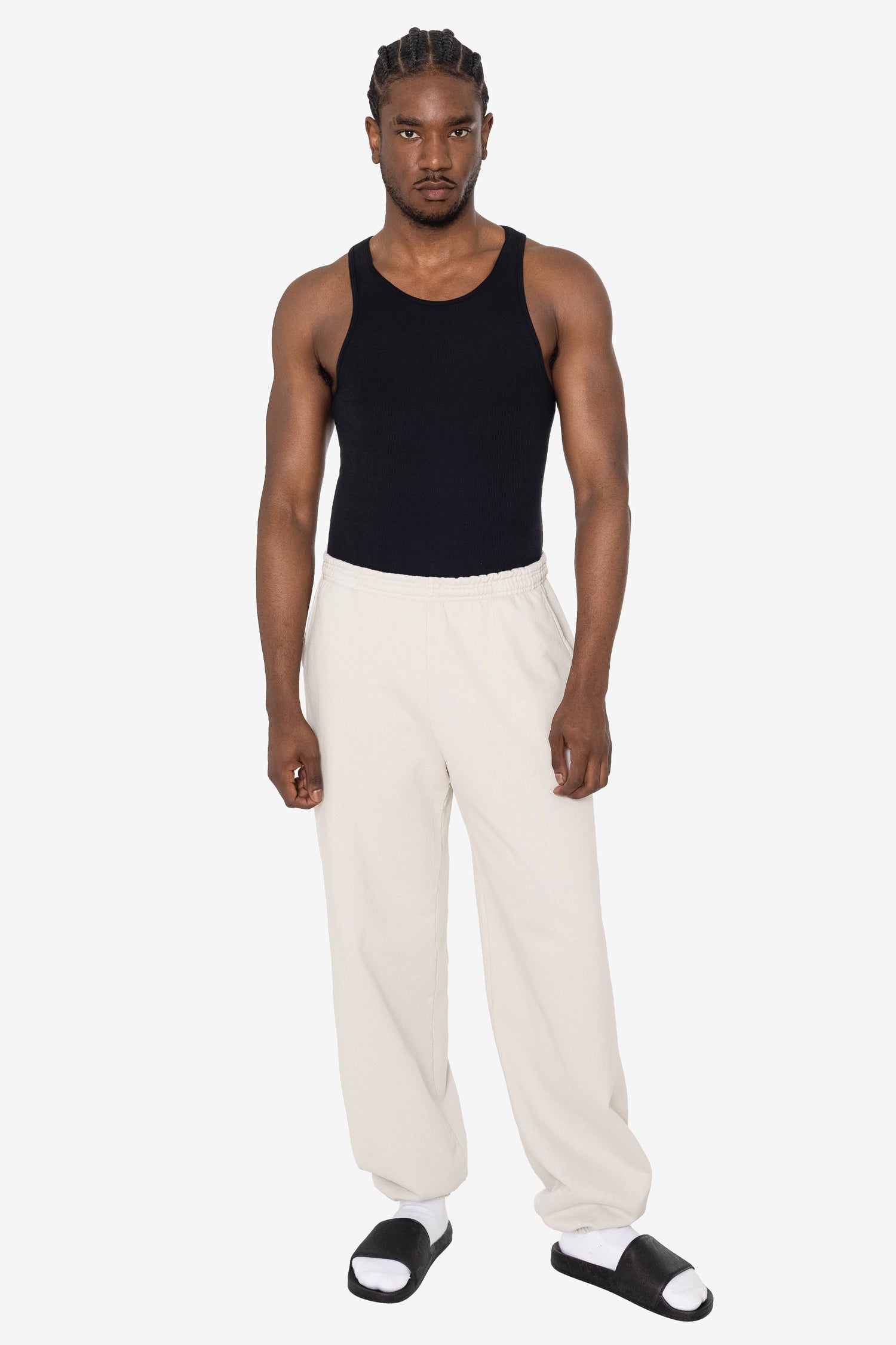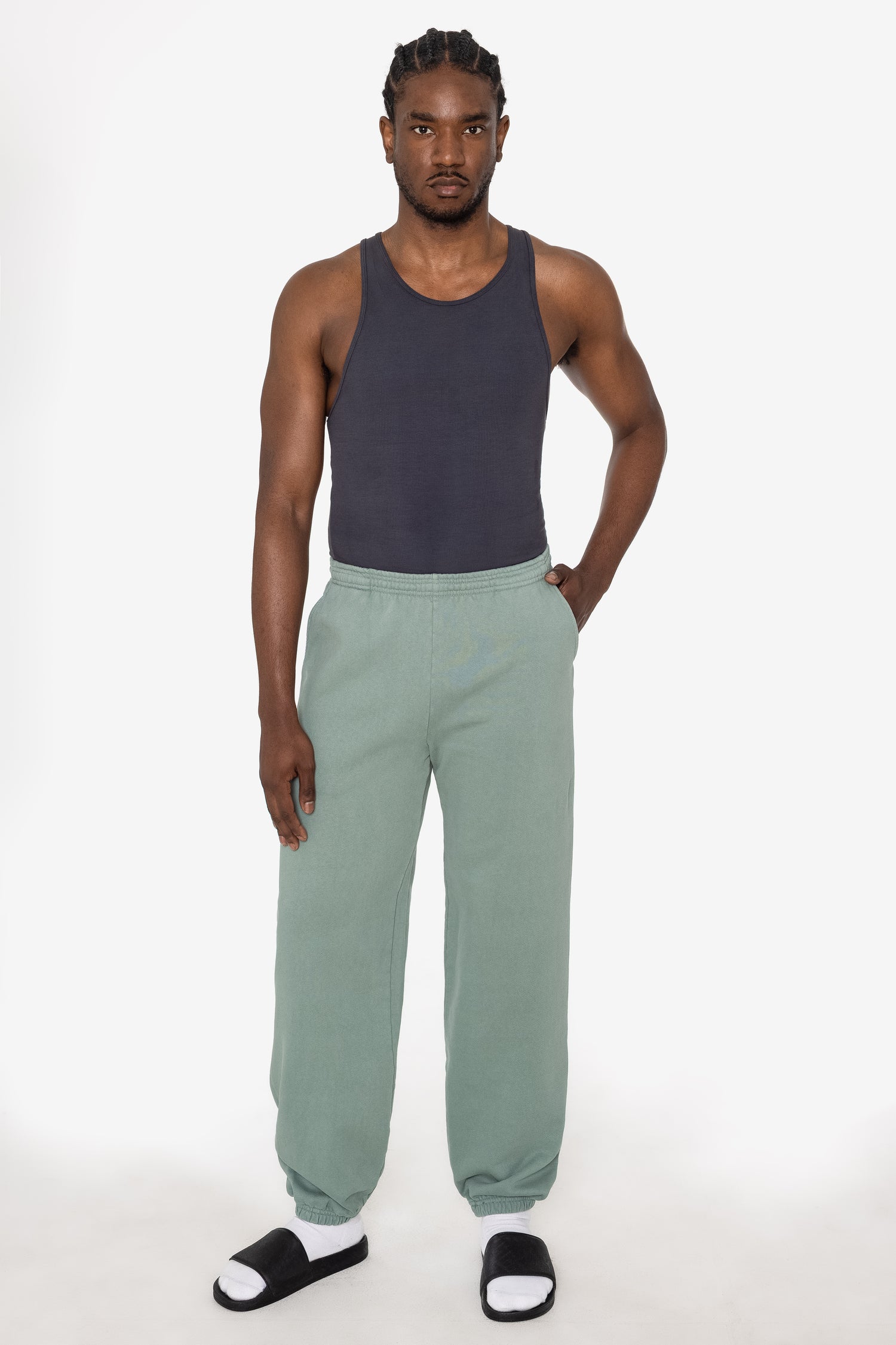 Our garment-dyed sweatpants are dyed after they're sewn, which gives them a more durable and even color, including in the stitching and ribbing. This also means they'll have less shrinkage and colors will stay true after repeated washings.