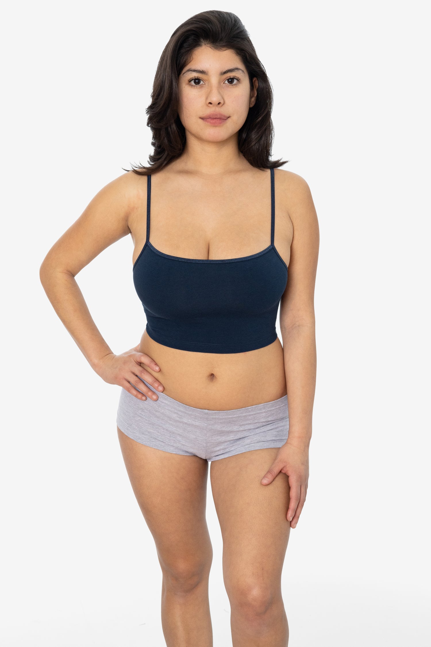 This style of crop top is actually kinda hard to find- a good, basic “spaghetti strap”tank. I love the classic, light grey color and I ordered a medium. My bust is 34C, waist 26, and I’m 5”9.