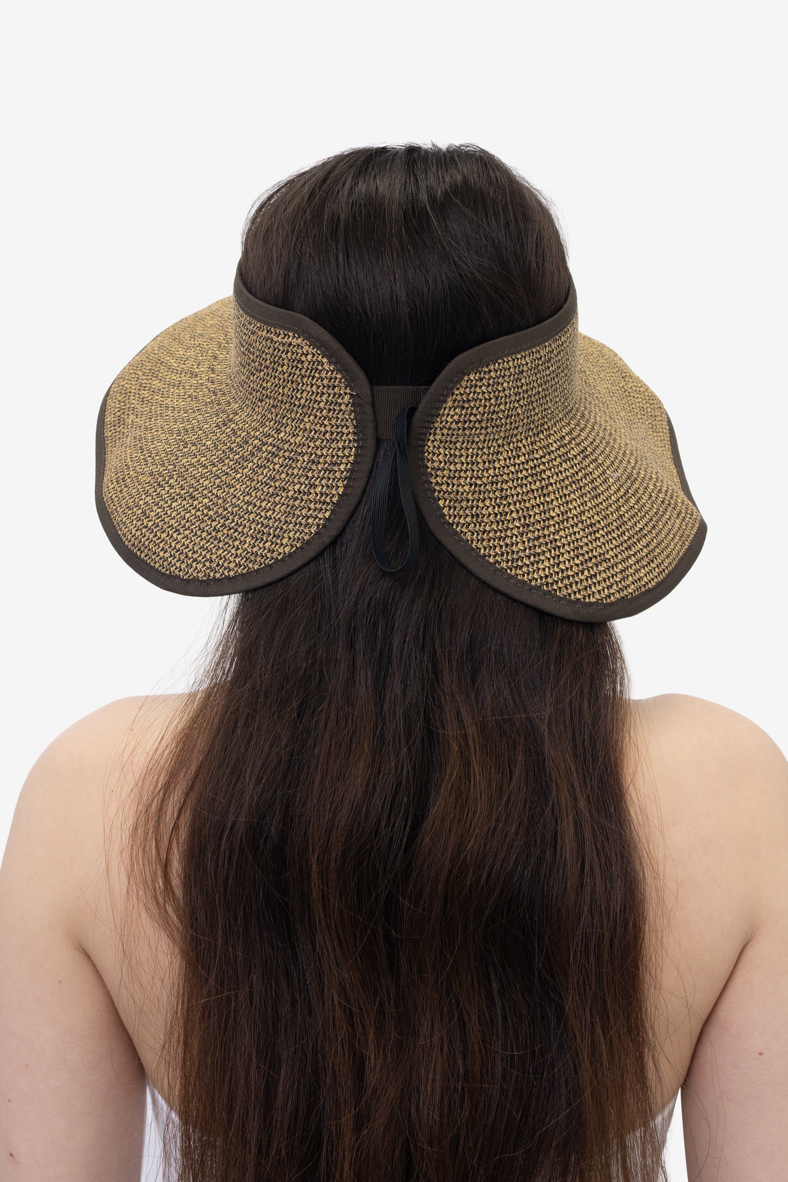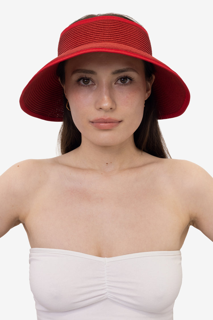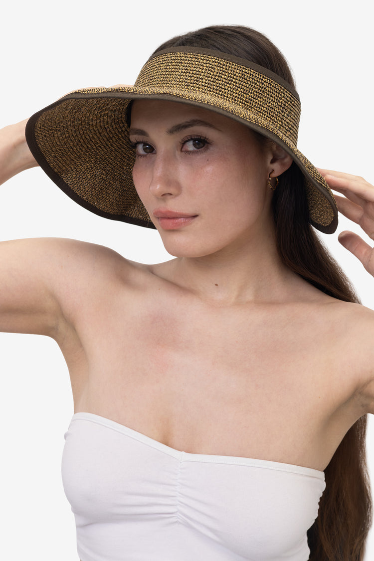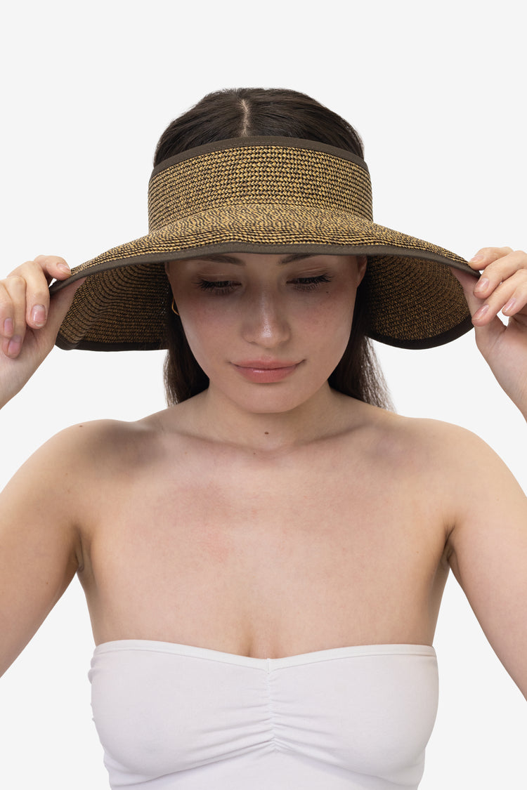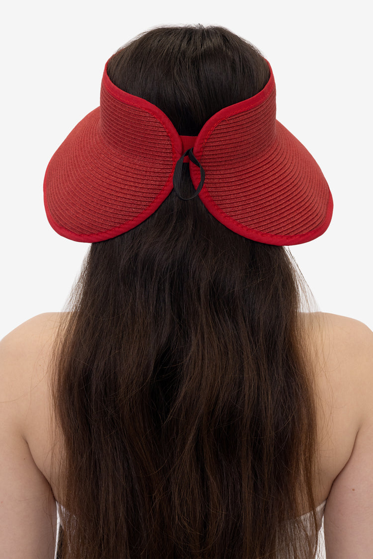 The Laurel Visor has an extra-wide brim, adjustable velcro fit, and can be rolled up tight and packed away without getting crushed.