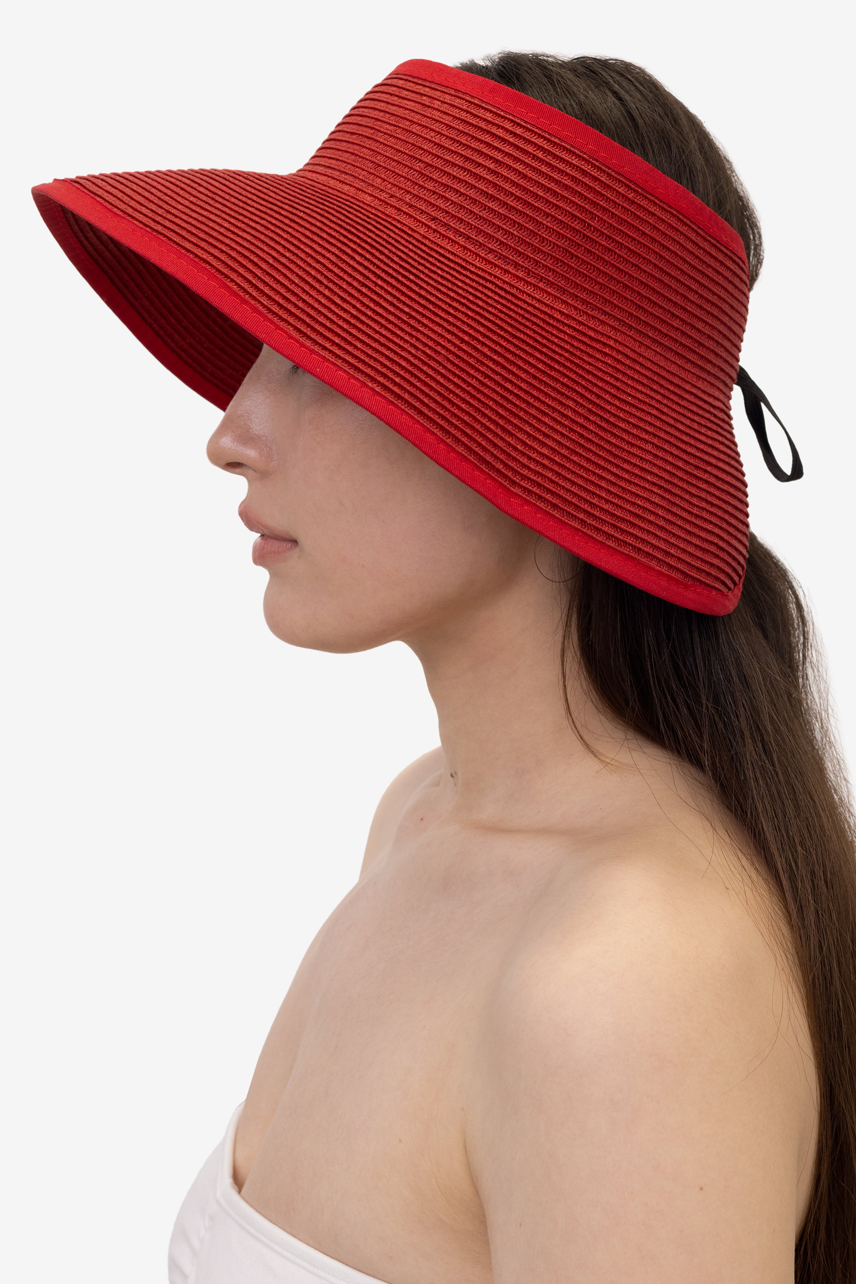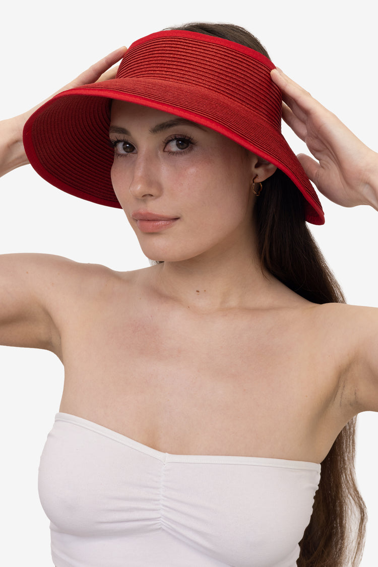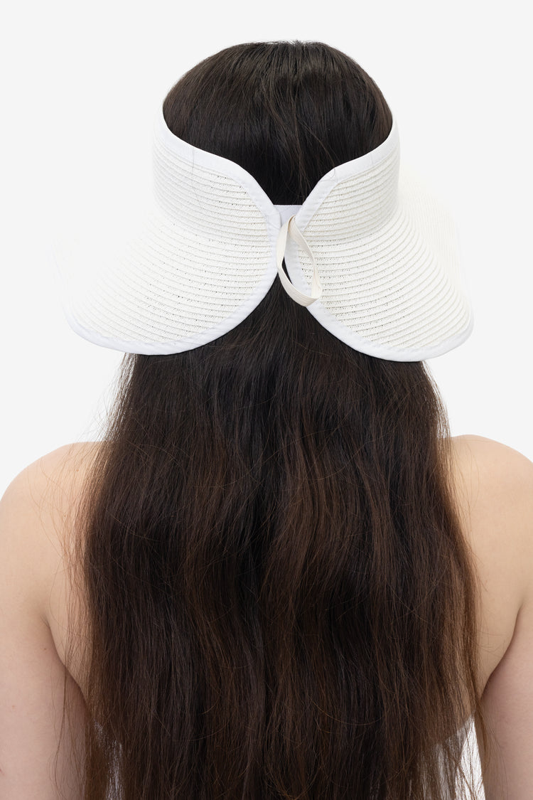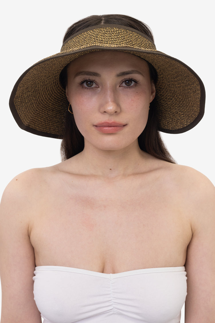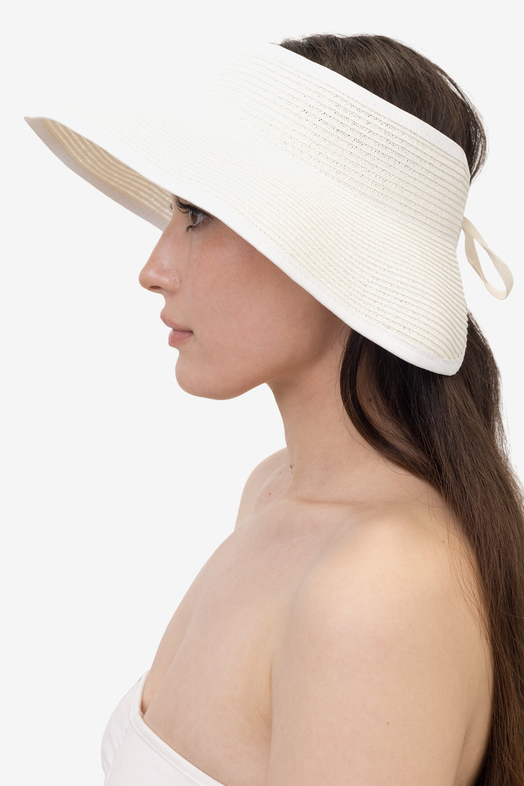 The Laurel Visor has an extra-wide brim, adjustable velcro fit, and can be rolled up tight and packed away without getting crushed.