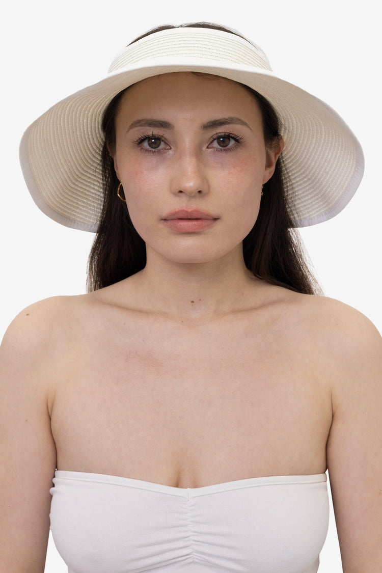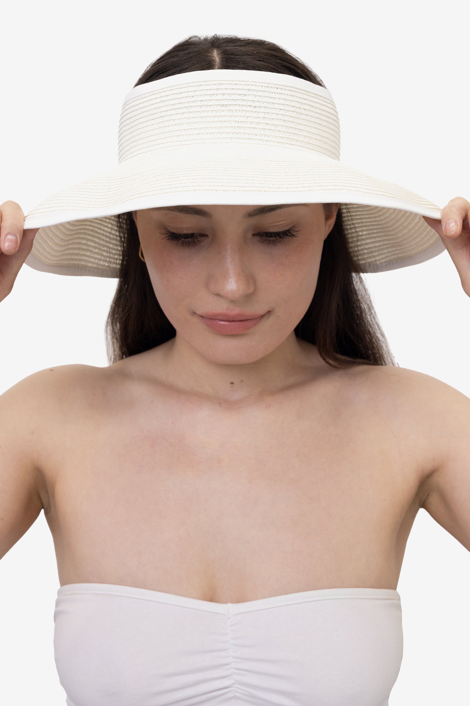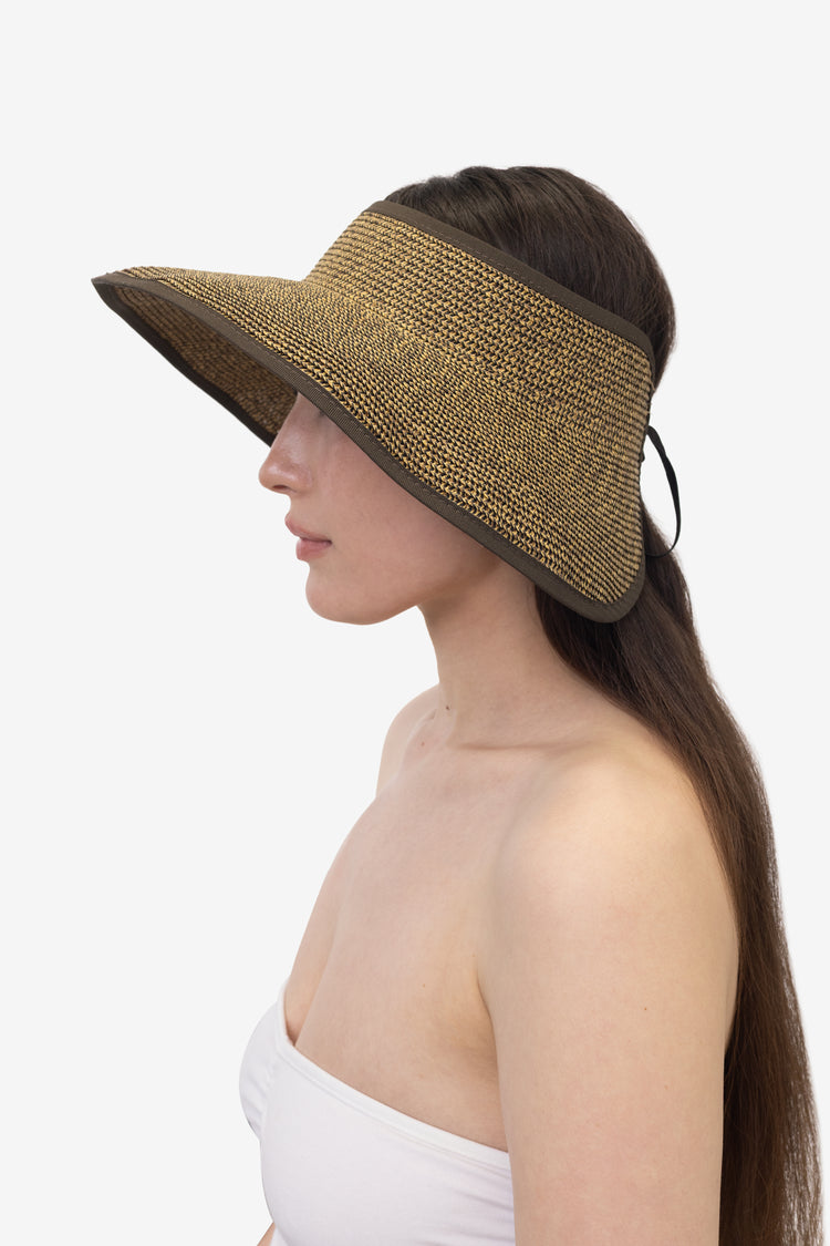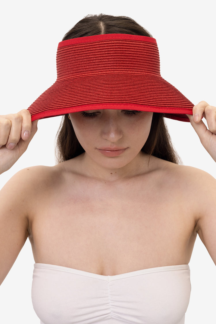 The Laurel Visor has an extra-wide brim, adjustable velcro fit, and can be rolled up tight and packed away without getting crushed.