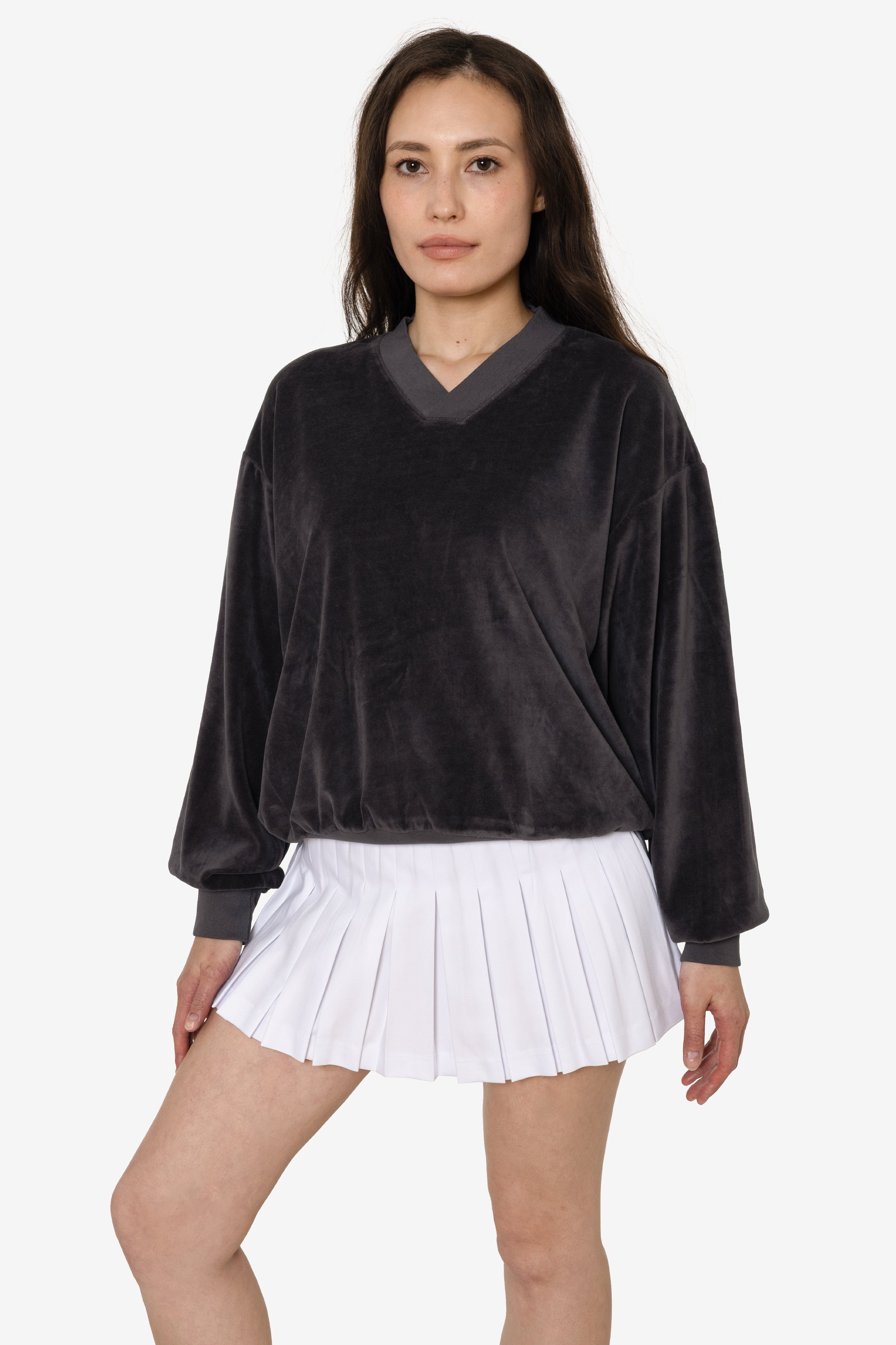 Our velour V-neck sweatshirt offers a relaxed, laid-back style with a comfortable fit. Made from soft, cozy velour, it’s ideal for layering or wearing solo. Pair it with our matching open bottom sweatpants for a casual, easygoing look, or team it with jeans for a more everyday vibe. Featuring a classic V-neckline and ribbed cuffs, this sweatshirt is perfect for adding a touch of effortless style to your wardrobe.